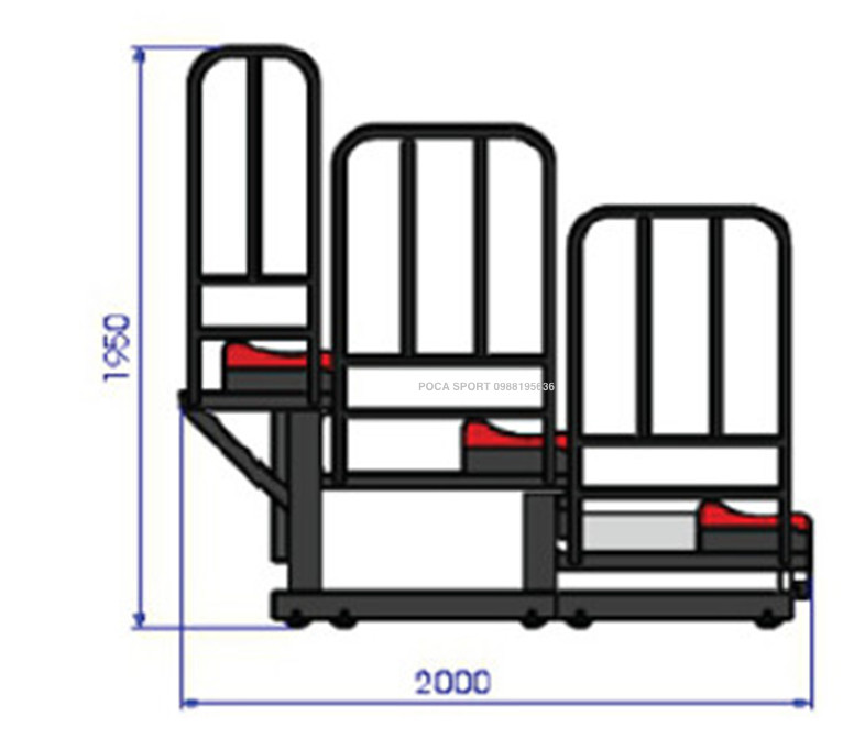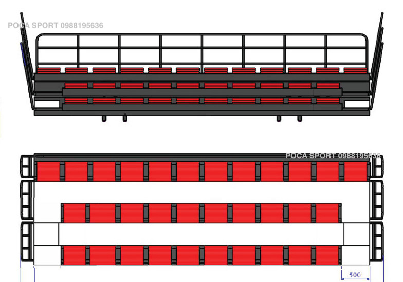 Khán đài xếp thiết kế mới 6m - 3 bậc (3 hàng ghế)