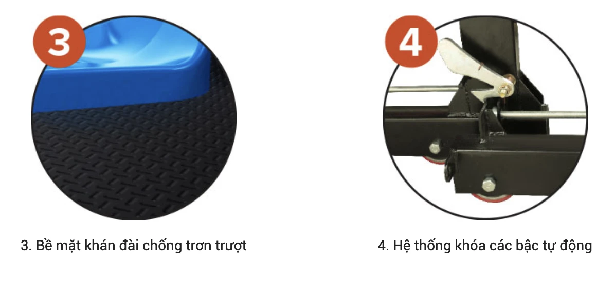 Khán đài xếp lồng 4 hàng, lối cầu thang bên phải hoặc trái, sức chứa 36 người