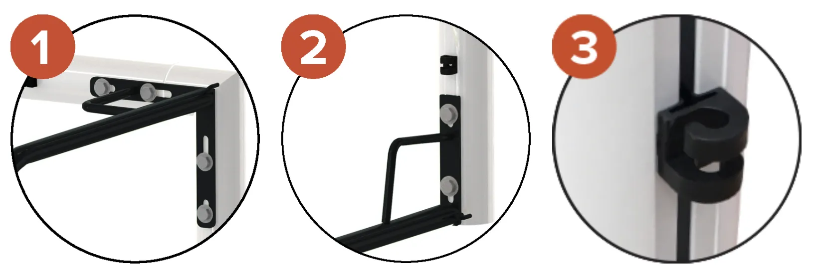 - Móc treo lưới gắn trực tiếp trên khung thành