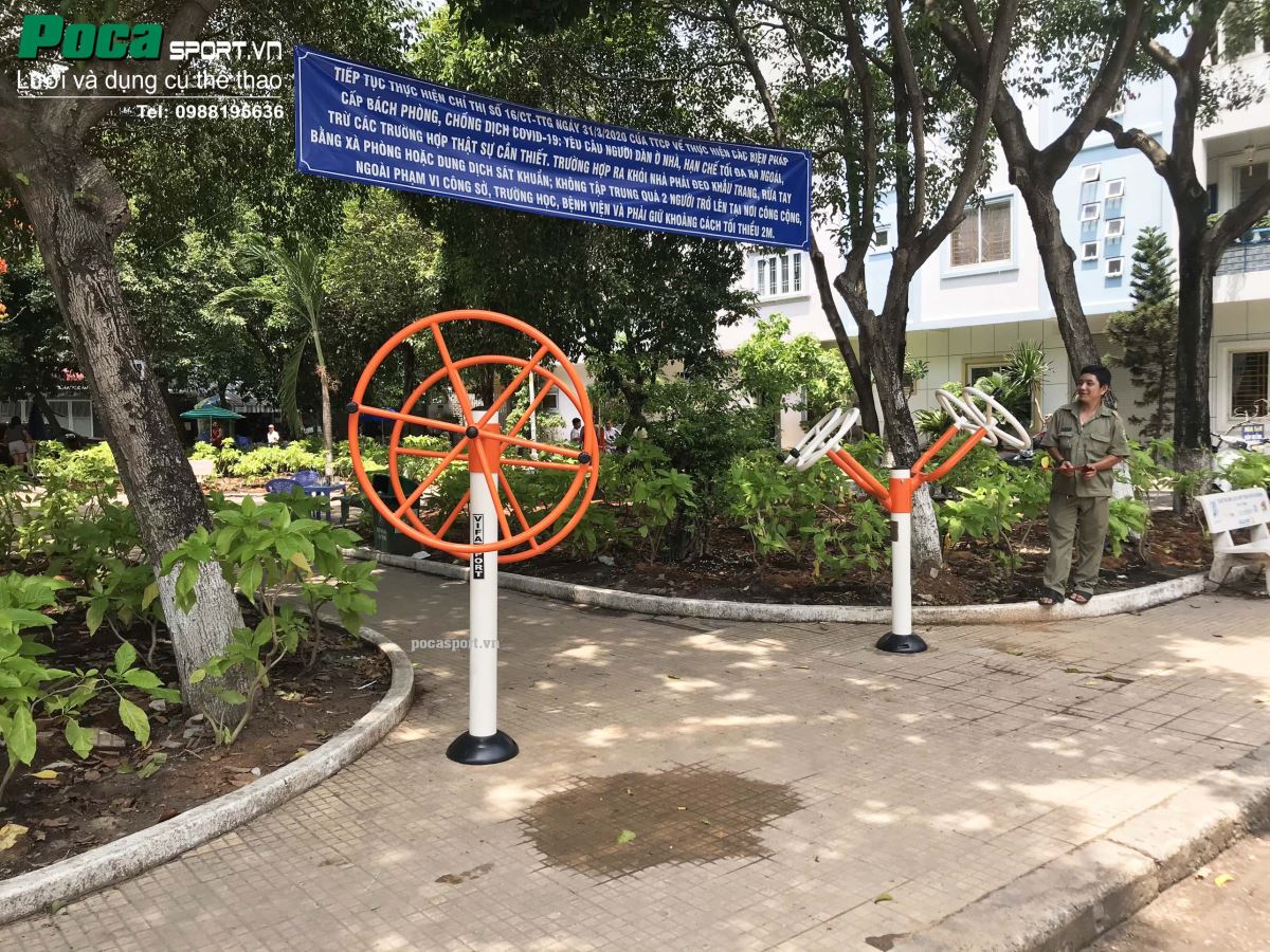 LẮP ĐẶT MÁY TẬP THỂ DỤC NGOÀI TRỜI TẠI CÔNG VIÊN CƯ XÁ NGUYÊN HỒNG, P11, Q BÌNH THẠNH, HCM Thiết bị tập squat, thiết bị tập lưng eo, thiết bị tập tay vai đơn, thiết bị tập tay vai đôi, đi bộ trên không, thiết bị xà kép công viên