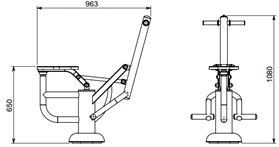 Ngồi trên thiết bị, hai tay nắm cần phía trước, hai chân đặt trên hai thanh phía dưới, dùng tay kéo về sau thực hiện đồng bộ động tác cơ - tay - chân - bụng.